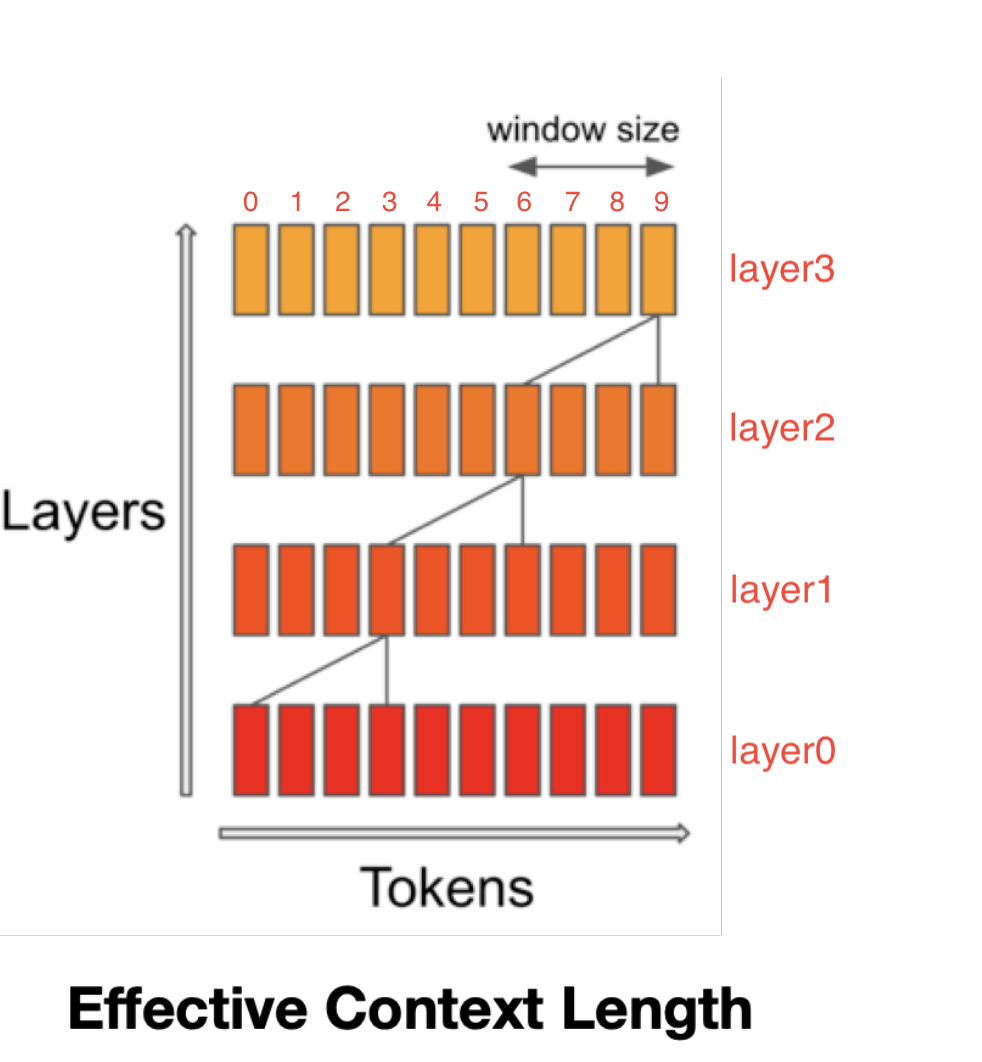 context_len8192 是说它训练的时候,传进来的数据最大只能到 8192 个 tokens,也就是训练时的上下文长度上限windows_size 4096 是 sliding windows attention 的滑窗大小,1 次 attention 计算的上下文范围只有 4096 个 tokens