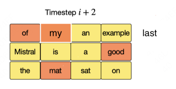 rolling buffer cache 设置的放置方式,这两条 prompt 中 KV 值是非顺序存放的。例如对于第 2 条 prompt,它 KV 值的存放顺序是